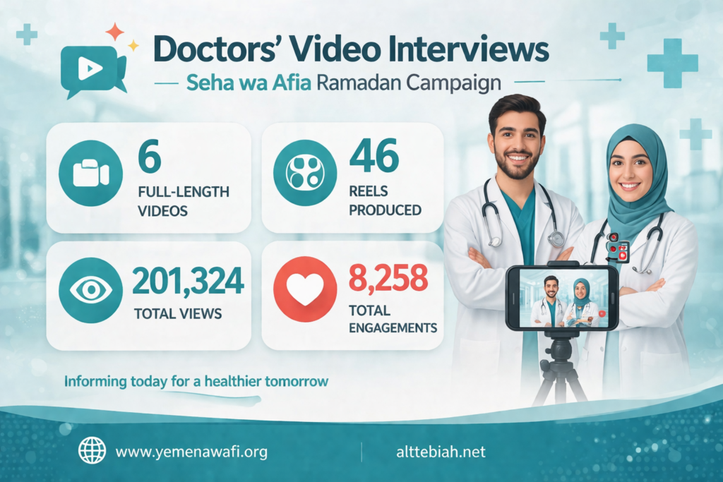 Additionally, the campaign extended its reach through eight radio stations across 12 governorates, broadcasting more than 100 interactive programs and segments with the participation of dozens of specialists. This helped deliver key health messages to broader audiences, especially in areas with limited internet access.