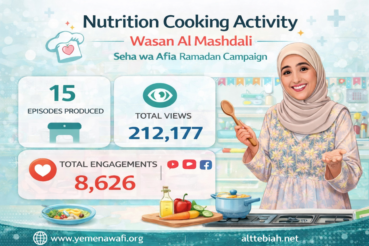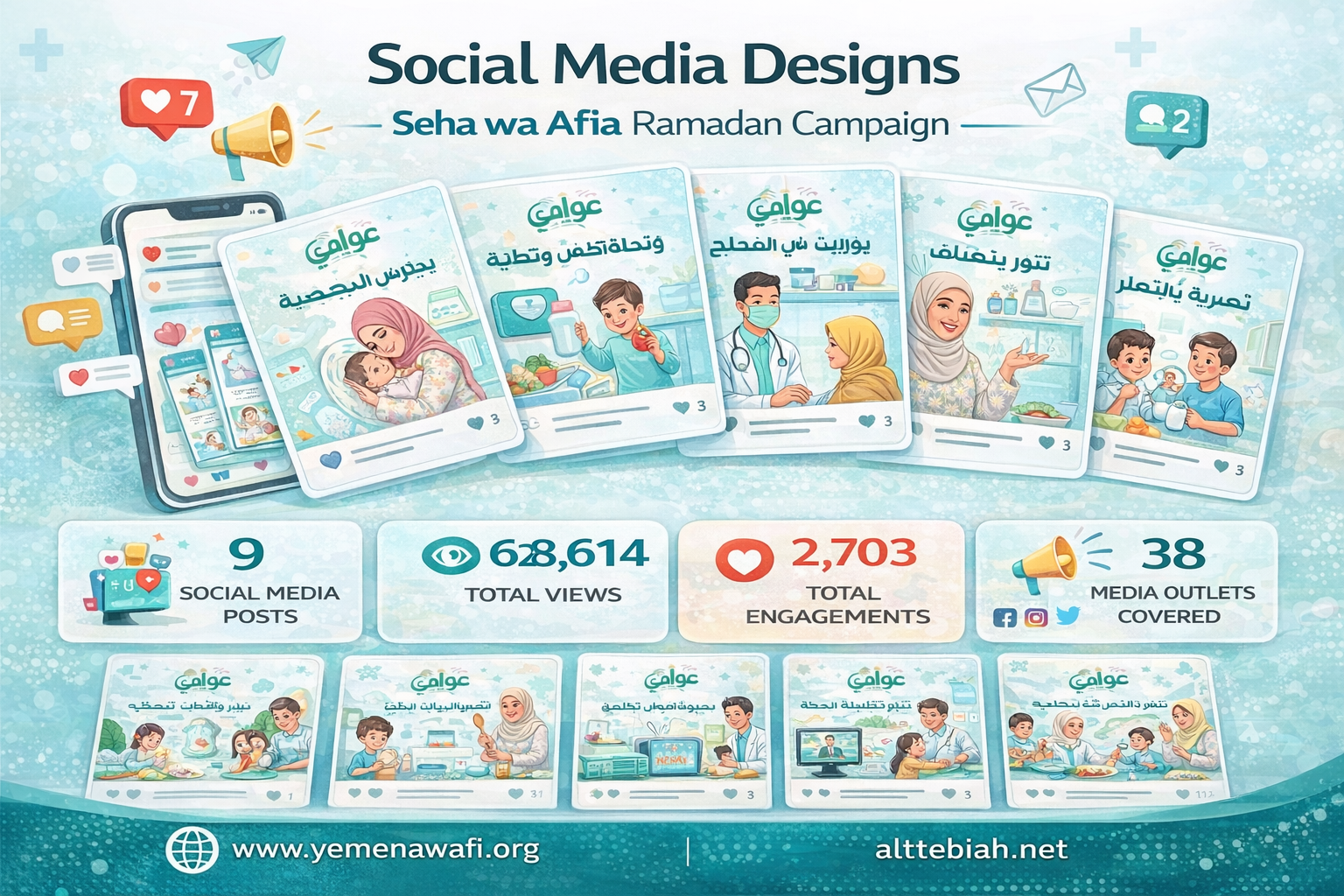 The Ramadan Health Awareness Campaign “Seha Wa Afia”, implemented by Awafi Health Media in partnership with the National Center for Health Education and Information and supported by the United Nations Children’s Fund (UNICEF), achieved significant reach and engagement, surpassing 10.65 million reach and interactions across social media platforms between 17 February and 27 March 2026.